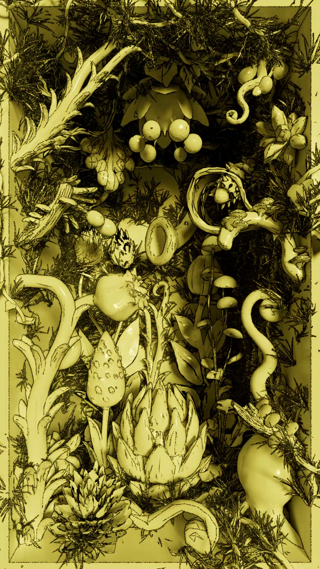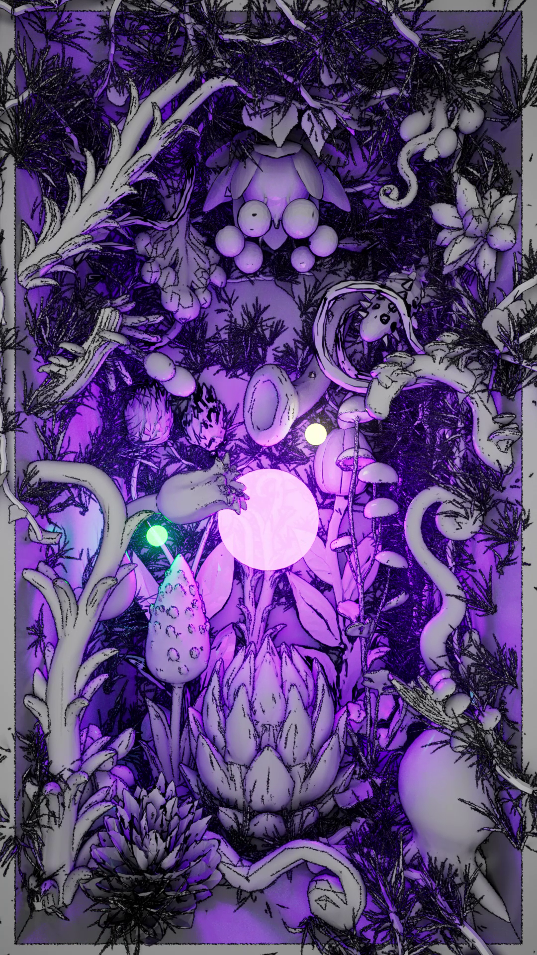 I aimed to bridge the gap between digital biology and classical techniques, searching for organic "hints of nature" within a rigid technological space. The resulting animation is an exploration of "inner motion," where the visuals bloom and pulse as a direct reaction to the frequencies and rhythms of the track.