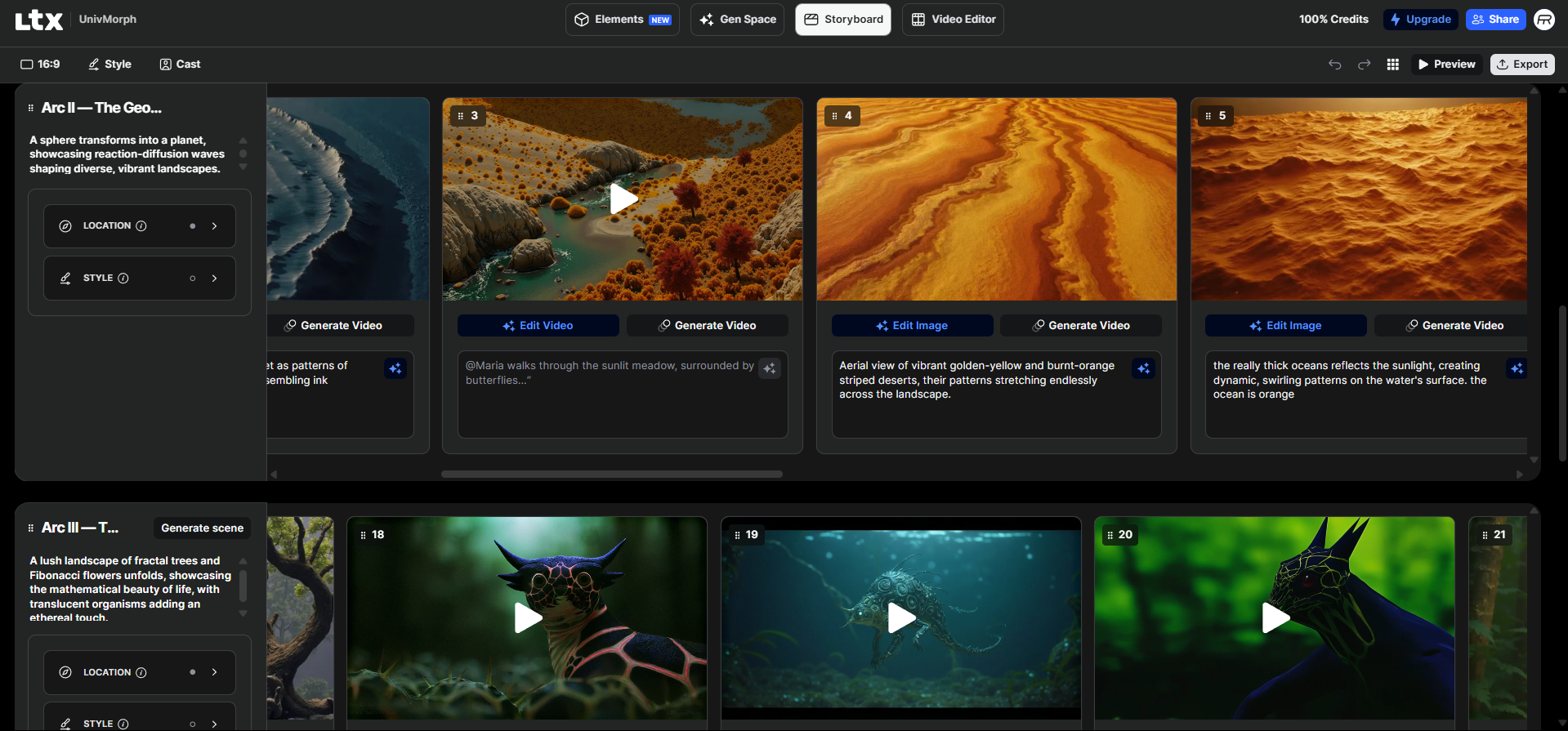 To bring this specific vision to life, I utilized the LTX Studio production pipeline. The platform’s generative tools, timeline and camera controls allowed me to translate abstract mathematical behaviors and creatures created through this, into a cohesive narrative, maintaining visual consistency across the entire ecosystem while pushing the boundaries of AI-driven world-building.