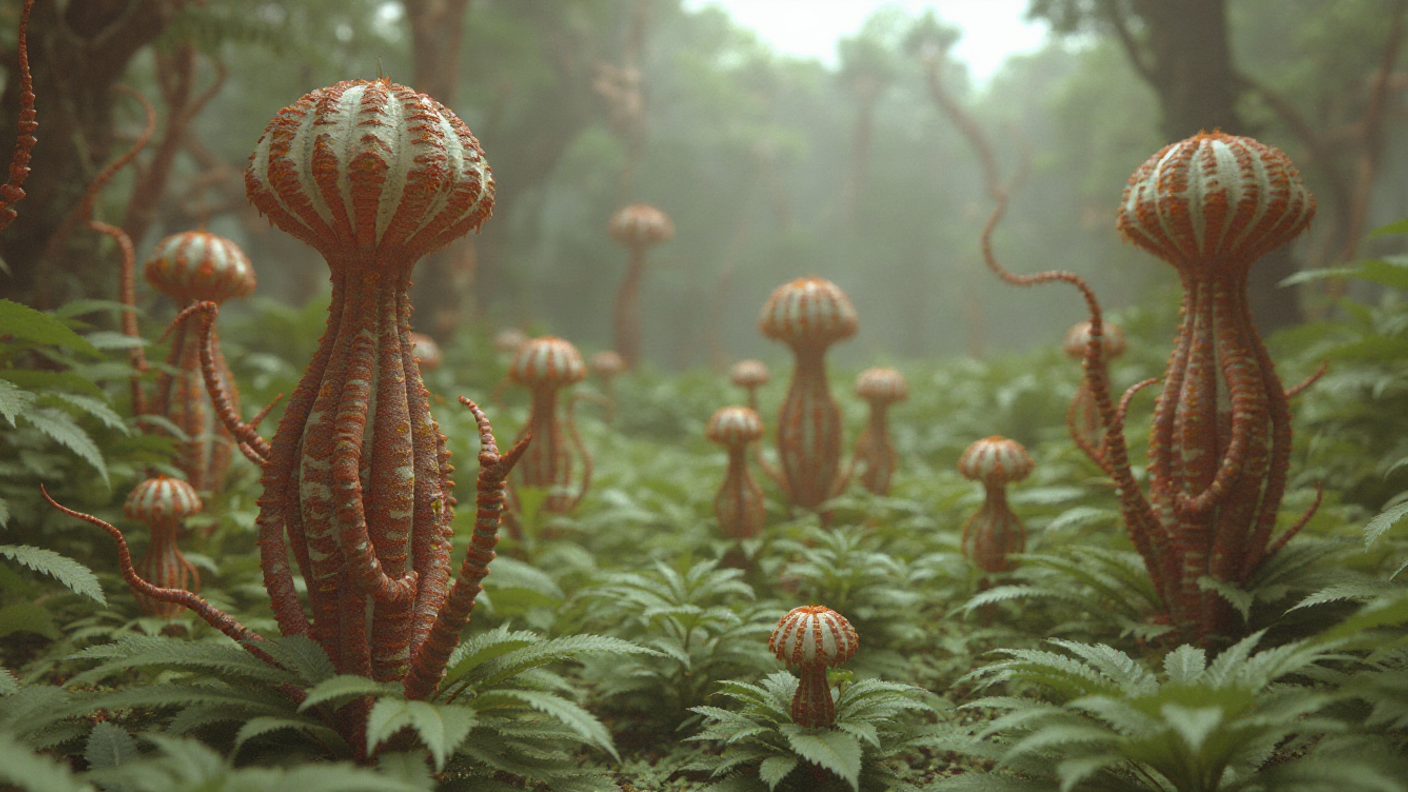 The film explores the intersection of mathematical order and biological chaos. By simulating natural behaviors—specifically Chaos Theory, Reaction Diffusion, and the Fibonacci Sequence—the work visualizes the growth of alien ecosystems that feel both familiar and otherworldly. It is a study of how digital "seeds" can bloom into complex, self-organizing structures, mirroring the deep patterns found in our own universe.